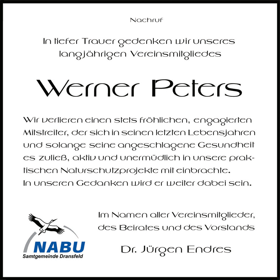 Nicht alle unsere Aktivitäten finden auch einen Widerhall in den lokalen und regionalen Medien. Damit für den Naturschutz und/oder für den NABU Dransfeld-Münden bedeutsame Informationen nicht untergehen, beleuchten wir an dieser Stelle noch einmal gesondert herausragende Ereignisse und Höhepunkte der zurückliegenden Jahre:
