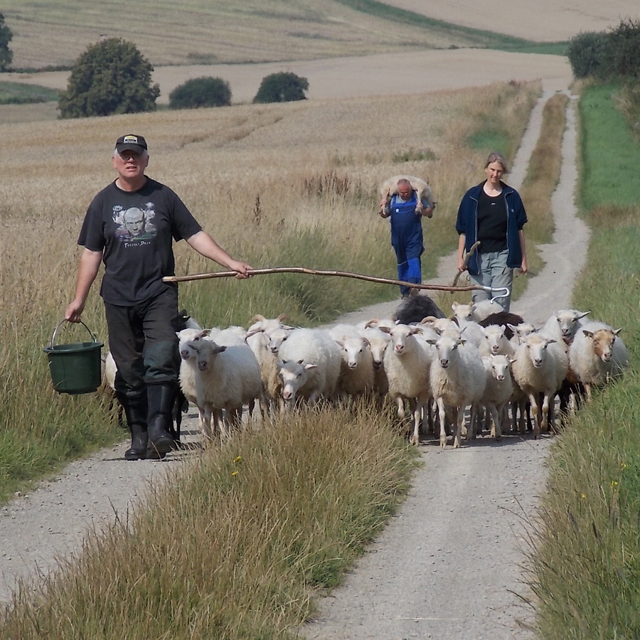 Mein Name ist Walter Peters und ich beweide mit einer großen und einer kleinen Wanderschafherde eigenes und gepachtetes artenreiches Grünland, das teilweise dem Nabu gehört. Mein Gebiet reicht von den hiesigen kleinen Fließgewässern über Dransfeld, Scheden und das Niemetal bis nach Hardegsen und Offensen.