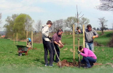 Aber auch einige private Flächen, die uns von Naturfreunden für Maßnahmen des Naturschutzes eigens zur Verfügung gestellt wurden, konnten in diesem Zuge mit neuen Obstbäumen bereichert werden, sei es mit nur wenigen Einzelexemplaren oder mit kleineren Gruppen.